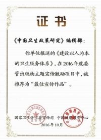 本次推薦評選作品主要是在2015年9月30日至2016年7月31日期間,以衛(wèi)生計生重點工作為主題,公開發(fā)表的新聞時政、綜合指導(dǎo)、科普、學(xué)術(shù)類作品。凡是公開出版的圖書、期刊、報紙以及依托其開展的活動和新媒體傳播案例均可推薦參評。院校組織推薦的《中國衛(wèi)生政策研究》和《醫(yī)學(xué)信息學(xué)雜志》榮獲“最佳期刊”獎,《中國衛(wèi)生政策研究》的專題作品“建設(shè)以人為本的衛(wèi)生服務(wù)體系”、《中國循環(huán)雜志》的專題作品“《中國心血管病報告2015》概要”和“中國冠狀動脈血運重建適宜性標(biāo)準(zhǔn)的建議(試行)”,以及《中國醫(yī)藥導(dǎo)報》的欄目“‘兩會’報道”榮獲“最佳宣傳作品”獎。我院被評為“最佳組織單位”。