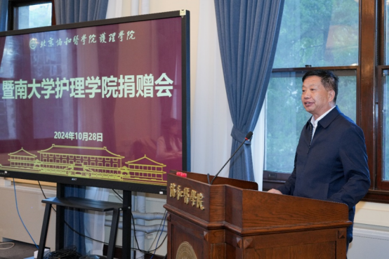 護理學院李崢院長在致辭中對陳偉菊院長、龔華芳書記一行來訪表示歡迎,高度評價2020年獲得協和護理百年卓越人物的黃愛廉先生長期以來在護理教育與研究領域取得的成就。先生捐獻的校徽,承載著協和人的情懷,蘊藏著先生的奮斗歷程和寶貴經驗,我們將以她為榜樣,秉承“勤慎警護”的校訓,不斷提高教育質量,培養更多優秀護理人才,為推動我國護理事業的高質量發展貢獻力量。