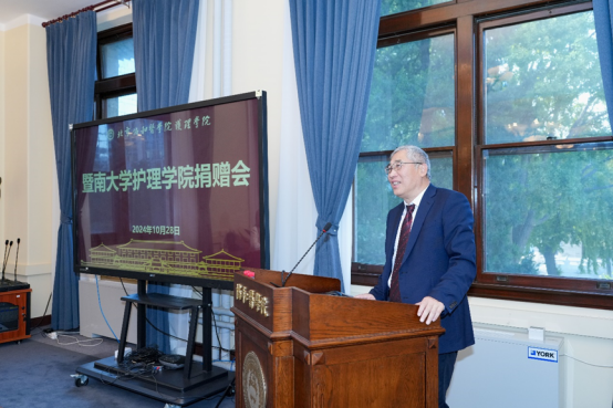 10月28日,暨南大學臨床護理研究院院長陳偉菊、護理學院書記龔華芳等一行7人到訪北京協和醫學院,按照協和護理學專業杰出校友黃愛廉先生囑托,將校徽捐獻母校,并就護理學科發展建設、卓越護理人才培養、臨床實踐教學改革等方面開展交流座談。院校原黨委副書記、歷史研究與文化建設項目辦公室主任、校友會常務副會長王云峰,中華護理學會理事長、北京協和醫學院護理學院副院長吳欣娟,院校檔案中心、校友會等部門負責人出席活動。護理學院領導班子成員及相關部門負責人、師生代表共計40人參加活動。捐獻活動由護理學院黨委書記安道彩主持。
