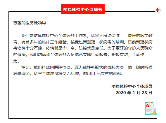 關鍵時刻,關鍵在黨。面對突如其來的疫情,放療科全體放療人積極行動起來。放療科黨支部第一時間成立疫情應急響應小組,黨員們隨時聽從組織召喚,哪里需要就到哪里去!黨員萬寶同志說:“此時此刻,我要向黨組織,各級領導請戰,我自愿申請加入醫療隊從事力所能及的工作,服從安排,聽從指揮!”