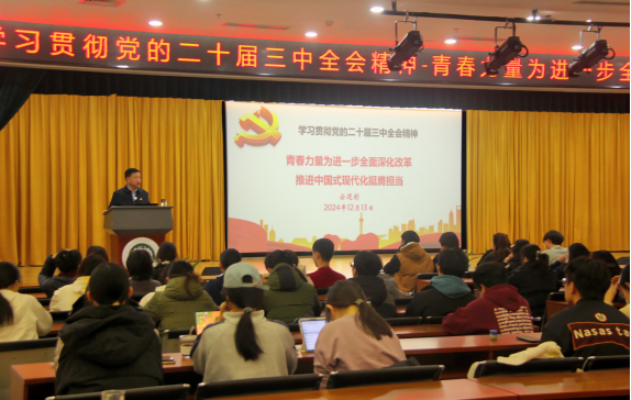 青春心向黨,奮進新征程。2024年12月13日中午,北京協和醫學院護理學院團委在八大處校區毓禪報告廳組織開展“青春力量為進一步全面深化改革、推進中國式現代化挺膺擔當”主題團課,由學院黨委書記安道彩講授黨的二十屆三中全會精神,23本、24本全體團員及入團積極分子參加團課。
