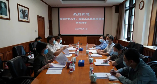 6月1日下午,北京市委教育工委副書記李軍鋒,國家衛生健康委科教司副司長陳昕煜,北京市委教育工委安穩處處長王建輝、安穩處干部隋騰飛及駐校聯絡員安紅娟等到我校調研返校復課疫情防控準備工作。李青副院校長、王云峰副書記及張勤副院校長出席會議。