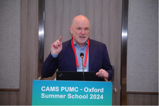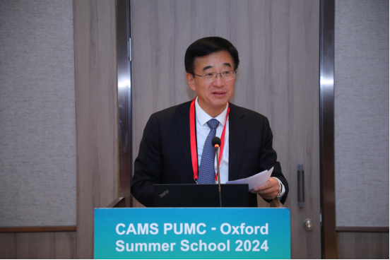 王辰院校長在致辭中對遠道而來的牛津大學教授團隊表示熱烈歡迎與感謝,并對參加暑期學校的同學們表示祝賀。他指出,牛津大學是院校重要的全球戰略合作伙伴之一,自2017年合作建設中國醫學科學院牛津研究所以來,雙方共同探索完善國際化醫學科技創新體系,在科研創新、人才培養、醫學教育等方面開展了廣泛且深入的合作。王辰院校長指出,醫學是多學、至學、人學,是獨特的、綜合的、巨大的體系,關乎人的終極福祉。一個優秀的醫學生要綜合掌握自然科學、社會科學、人文科學的內涵并善加應用,要具備群體觀、人類觀和世界觀,追求健康大同。他希望同學們充分利用暑期學校提供的國際化資源和平臺,立足國際醫學前沿,培養跨學科、跨文化、跨國界交流學習的能力,努力成長為可堪重任的新時代醫學科技人才。