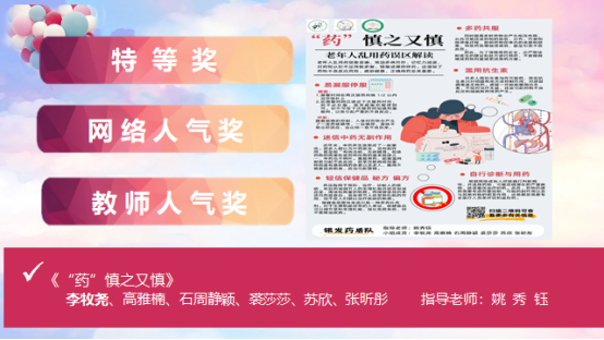 頒獎活動于3月28日在八大處校區舉行,護理學院副院長梁濤、指導老師和2022級學生參加活動。《“藥”慎之又慎》憑借老齡化用藥誤區的AI可視化設計斬獲特等獎。獲獎學生代表李牧堯分享團隊經歷,從設計零基礎起步,借助AI破解用藥安全知識轉化難題,創作通俗易懂的可視化作品。