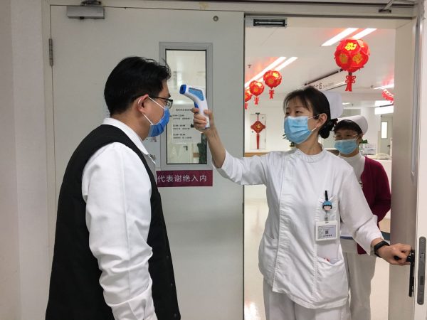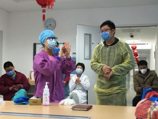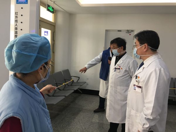 督導(dǎo)組到各臨床醫(yī)療單元督導(dǎo)檢查病區(qū)體溫檢測,防護知識培訓(xùn)及防護預(yù)案落實情況