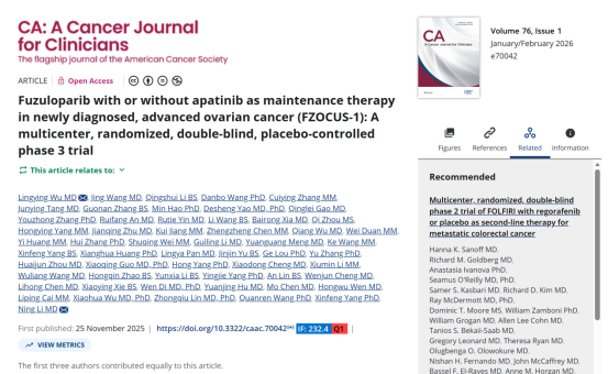 中國醫學科學院腫瘤醫院婦科吳令英教授為主要研究者、李寧教授為共同通訊作者的FZOCUS-1研究,于今年1月份見刊 CA:A CANCER JOURNAL FOR CLINICIANS  ,是該期刊創刊以來首次收錄婦科腫瘤領域的臨床研究成果。