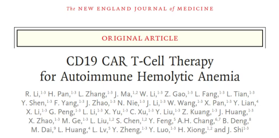 【開年NEJM中國首篇論著】血液病醫院施均/熊海清團:CAR T細胞治療自身免疫性溶血實現長期無藥緩解