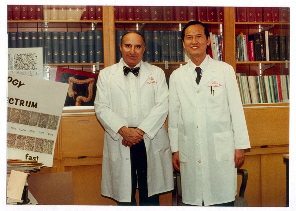 甄永蘇大學階段的學習演繹了一個勤奮逆襲的過程。與甄永蘇一同考入這多南方醫學知名院校的同學們,大多來自廣州市及周邊的重點中學。來自小鎮的甄永蘇剛入學的時候因為口音有別于廣州本地人而被同學們調侃戲稱為“臺山伯”。對學習充滿興趣的甄永蘇卻毫不在意,他珍惜向梁伯強、秦光煜等知名教授學習的機會,如饑似渴的在知識的海洋中遨游。甄永蘇回憶當時的想法,“就是覺得學習的機會太不容易了,總是想學的更深入一些,老師課上也只是按照平均水平來講授知識,所以課下就多下一些功夫,才能學精學專”,他意識到德語和英文對醫學學習的重要性,課后將老師講過的晦澀艱深的醫學詞匯深深的記在腦海里,所以能在老師的課堂提問中對答如流,課余不是就往圖書館跑,就是忙著和同學們模擬課上互相提問,周末跑到廣州的舊書店一條街文德路淘醫學專業外文二手書、影印本,長期的訓練為以后開展病理研究打下了堅實的基礎,培養了濃厚的興趣。當時,在梁伯強教授等學者的推動下,廣州公眾理念更新,逐漸接受死后進行病理解剖,中山醫學院每年尸解數量為全國之冠,為病理學教學提供了良好的教學環境,使得甄永蘇和同學們大為受益,水平日益精進。