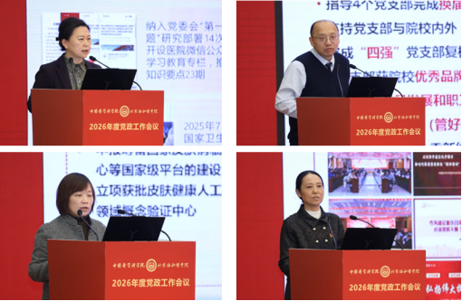 會議指出,2025年,院校黨委在國家衛(wèi)生健康委黨組堅(jiān)強(qiáng)領(lǐng)導(dǎo)下,始終堅(jiān)持以習(xí)近平新時代中國特色社會主義思想為指導(dǎo),深入學(xué)習(xí)貫徹黨的二十大及二十屆歷次全會精神,加強(qiáng)黨的全面領(lǐng)導(dǎo),持續(xù)推動黨建與業(yè)務(wù)工作同頻共振、深度融合,以高質(zhì)量黨建引領(lǐng)和保障高質(zhì)量發(fā)展,為各項(xiàng)事業(yè)進(jìn)步提供堅(jiān)強(qiáng)政治保證。一是堅(jiān)決擁護(hù)“兩個確立”、踐行“兩個維護(hù)”,推進(jìn)政治能力再提升。嚴(yán)格落實(shí)“第一議題”制度,以科學(xué)決策引領(lǐng)方向,以巡察整改深化治理,筑牢安全穩(wěn)定防線,不斷夯實(shí)事業(yè)發(fā)展根基。二是扛牢政治責(zé)任,抓實(shí)學(xué)習(xí)教育,推進(jìn)作風(fēng)建設(shè)新突破。持續(xù)完善教育教學(xué)體系,高位高效推進(jìn)中央八項(xiàng)規(guī)定精神學(xué)習(xí)教育走深走實(shí)。三是深化創(chuàng)新理論,夯實(shí)思想根基,推進(jìn)信仰之基更牢固。扎實(shí)推進(jìn)師德師風(fēng)建設(shè),牢牢守住意識形態(tài)主陣地,系統(tǒng)實(shí)施文化建設(shè)年系列活動,凝煉推廣核心文化要素,有力彰顯院校文化凝聚力與育人功能。四是筑牢堡壘先鋒,強(qiáng)化人才支撐,推進(jìn)干部隊(duì)伍煥新顏。科學(xué)統(tǒng)籌干部選拔任用,持續(xù)深化干部職工教育培訓(xùn),做實(shí)做細(xì)干部全方位管理與經(jīng)常性監(jiān)督,推動干部隊(duì)伍整體能力素質(zhì)有效提升。五是全面從嚴(yán)治黨,深化群團(tuán)共建,推進(jìn)政治生態(tài)更清朗。堅(jiān)持風(fēng)腐同查同治,壓實(shí)落細(xì)管黨治黨責(zé)任,凝聚黨外人士思想政治共識,充分發(fā)揮老同志專業(yè)經(jīng)驗(yàn)優(yōu)勢,匯聚團(tuán)結(jié)奮進(jìn)力量。六是融合黨建業(yè)務(wù),聚力主責(zé)主業(yè),推進(jìn)發(fā)展質(zhì)效雙躍升。提速推進(jìn)核心基地建設(shè),持續(xù)深化醫(yī)學(xué)教育改革,堅(jiān)持統(tǒng)籌兼顧,各項(xiàng)重點(diǎn)任務(wù)穩(wěn)步推進(jìn),為院校事業(yè)發(fā)展注入強(qiáng)勁動力。