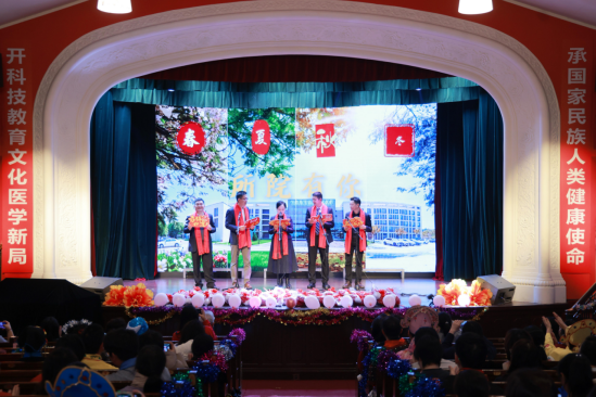 伴隨著悠揚的旋律,到場的領導班子成員登臺聯袂演唱一首改編自《成都》的歌曲——《協和》,歌詞擷取所院的四季芳華,勾勒出職工同心共濟、攜手同行的圖景,字字寄情、聲聲表意。旋律落定,所院領導向全體教職工拜年,并為生肖為馬的到場教職工送上可愛的吉祥物,大家依次傳遞喜氣洋洋的美好祝福,恭祝新的一年萬事勝意!