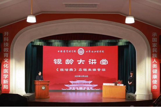 2025年12月18日上午,“銀齡大講堂”第四期專題講座在協(xié)和醫(yī)學(xué)院壹號禮堂成功舉辦。活動聚焦《民法典》繼承編相關(guān)熱點(diǎn)問題,為離退休老同志提供貼近生活的法律知識普及。院校黨委副書記張勤同志主持活動。院校機(jī)關(guān)及所院離退休職工代表及工作人員通過現(xiàn)場參會或視頻會議方式參與活動。