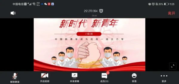 本班團支書結(jié)合華科、北大致敬北大援鄂醫(yī)療隊的信及實際事例,向大家傳達了“90后”黨員不怕吃苦、以舍生忘死的行動踐行誓言、在自己崗位上發(fā)光發(fā)熱的精神。作為“00后”的我們要有這樣的思想和膽量,貢獻出自己120%的力量,做全面發(fā)展的社會主義建設(shè)者和接班人。