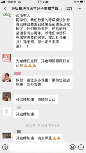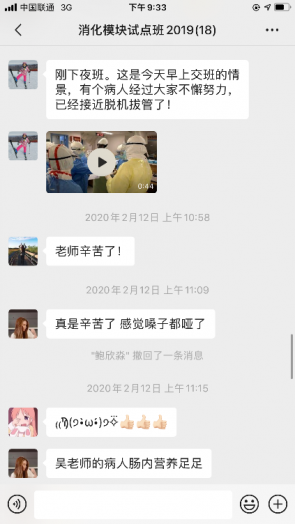 居家隔離的日子里,在認真學習理論知識之余,我們深深惦念著兩位前線的師長。兩位老師在緊張工作之余,仍然與我們分享前線的工作與生活。雖然厚重的防護服讓人看著就窒息,但是透過屏幕,我們能感受到老師們的喜悅與興奮,我相信老師們如此的樂觀態度是他們發自內心的對工作的熱情與對患者的責任。