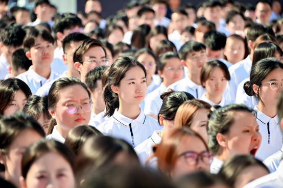 典禮現(xiàn)場學(xué)生仔細(xì)聆聽嘉賓演講