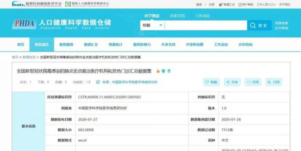 國家人口健康科學數據中心 發布全國新型冠狀病毒感染的肺炎定點救治醫療機構 和發熱門診匯總數據集