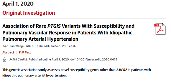 中國醫學科學院北京協和醫院荊志成研究團隊發現PTGIS為全新肺動脈高壓遺傳相關基因