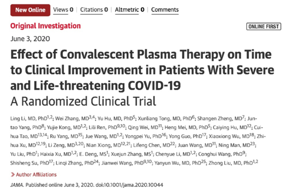 輸血研究所劉忠團(tuán)隊(duì)在恢復(fù)期血漿治療新冠肺炎方面取得重要成果