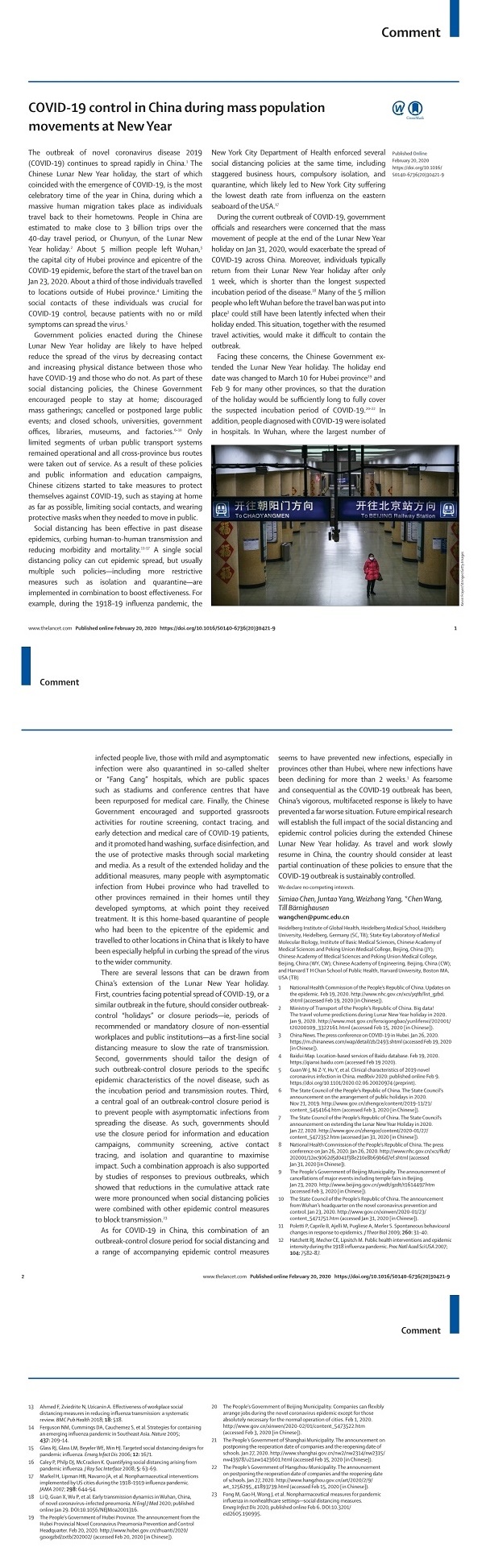 柳葉刀發中國工程院副院長、中國醫學科學院院長王辰院士評論:全球可借鑒中國控疫假期