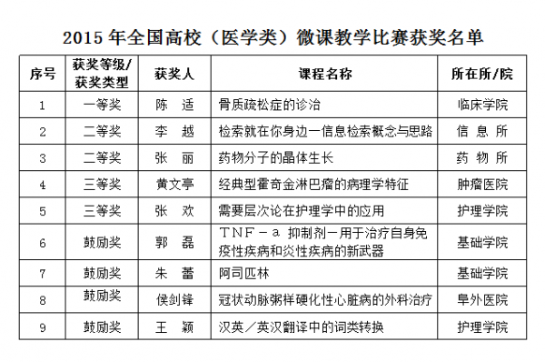 我校教師在2015年全國(guó)高校(醫(yī)學(xué)類) 微課教學(xué)比賽中喜獲佳績(jī)