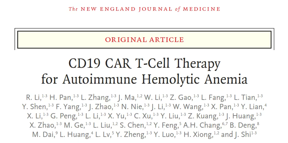 【開年NEJM中國首篇論著】血液病醫(yī)院施均/熊海清團:CAR T細胞治療自身免疫性溶血實現(xiàn)長期無藥緩解
