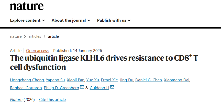 開年重磅突破!中國醫(yī)學科學院系統(tǒng)醫(yī)學研究院/蘇州系統(tǒng)醫(yī)學研究所李貴登團隊《自然》發(fā)文,解鎖T細胞耗竭分化新機制