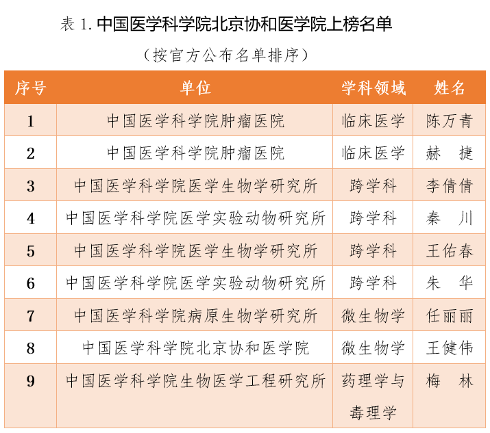 中國(guó)醫(yī)學(xué)科學(xué)院北京協(xié)和醫(yī)學(xué)院9人入選科睿唯安2023年度全球“高被引科學(xué)家”